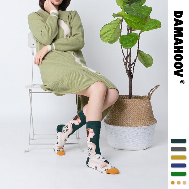 三小姐の袜巷春秋新款法国设计师SOCK个性创意彩色潮袜纯棉情侣中筒袜